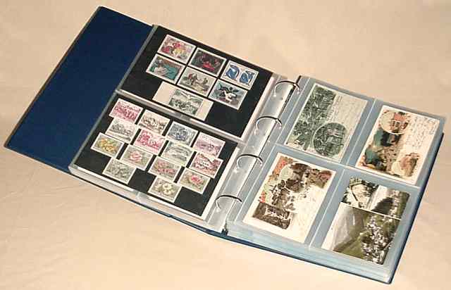 Lageralbum für 4 Karten pro Seite, etwa DIN-A4-Format, mit extra großem Fassungsvermögen von bis zu 600 Postkarten, sehr flexibel einsetzbar durch Blätter mit den verschiedensten Einteilungen von Sammelkarten bis DIN A4.